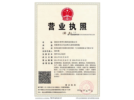 陜西百草萃生物科技有限公司,位于陜西省咸陽(yáng)市秦都區(qū)濱河西路1號(hào)大秦御港城,公司成立于1996年,主要從事天然植物種植、研發(fā)、生產(chǎn)、加工、銷售為一體的高科技企業(yè)。主營(yíng)醫(yī)藥原料、保健品原料、化妝品原料,精細(xì)化工原料。公司致力于人類健康保護(hù)事業(yè)“ 以科技為動(dòng)力,以質(zhì)量求生存” 的本質(zhì),依托陜西高新科技技術(shù)人才和科研優(yōu)勢(shì),已形成多學(xué)科、全方位、高層次的技術(shù)管理精英團(tuán)隊(duì)。充分利用秦巴山區(qū)的天然藥物資源,歷經(jīng)多年發(fā)展為打造百草萃生物品牌奠定了基礎(chǔ)。